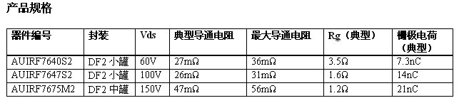 新器件符合 AEC-Q101 標準,是在IR要求零缺陷的汽車質量理念下研制而成的,所采用的環(huán)保材料既不含鉛,也符合電子產(chǎn)品有害物質管制規(guī)定 (RoHS) 。