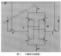 假設(shè)準(zhǔn)備往圖2的6T存儲單元寫入“1”,先將某一組地址值輸入到行、列譯碼器中,選中特定的單元,然后使寫使能信號WE有效,將要寫入的數(shù)據(jù)“1”通過寫入電路變成“1”和“0”后分別加到選中單元的兩條位線BL,BLB上,此時選中單元的WL=1,晶體管N0,N5打開,把BL,BLB上的信號分別送到Q,QB點(diǎn),從而使Q=1,QB=0,這樣數(shù)據(jù)“1”就被鎖存在晶體管P2,P3,N3,N4構(gòu)成的鎖存器中。寫入數(shù)據(jù)“0”的過程類似。