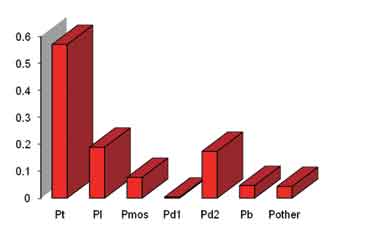 各功率器件的損耗如圖2所示。在圖2中,Pt是原邊變壓器損耗;Pl是輸出濾波電感的損耗;Pmos是MosFET的損耗;Pd1是整流二極管的損耗;Pd2是續(xù)流二極管的損耗;Pother是其他器件的損耗和。