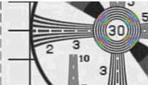 利用簡(jiǎn)單的陷波濾波器或帶通濾波器,將亮度和色度分離,會(huì)造成亮度信號(hào)路徑有色度殘余,而色度信號(hào)路徑有亮度殘余(圖3)。殘余信息會(huì)造成嚴(yán)重的圖像偽像,如“點(diǎn)蠕動(dòng)”(圖4)。色度路徑中殘余的色度信息也會(huì)造成“串色”等偽像(圖5)。
