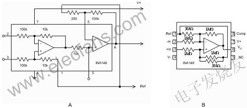 圖1在高壓側(cè)電流檢測(cè)中,共模電壓是主要問題老式分路檢測(cè)電路基于差動(dòng)放大器,即周圍帶四個(gè)電阻來設(shè)置增益并提供差動(dòng)輸入的運(yùn)算放大器(operationamplifier)。這些電阻使運(yùn)算放大器能接受超過其電源軌的共模電壓。不過,這也會(huì)帶來下面一些負(fù)面問題:一是電路必須配置為衰減器,在隨后的運(yùn)算放大器級(jí)中恢復(fù)增益,如圖2A中的IC結(jié)構(gòu)圖所示,運(yùn)算放大器的增益會(huì)成倍增大第一個(gè)放大器的偏置和漂移量,從而降低整體性能。二是采用高共模電壓差動(dòng)放大器要增加電阻網(wǎng)絡(luò),以使之在仍然只提供單位增益的同時(shí)能夠接受較高的共模電壓。高共模差動(dòng)放大器帶來的影響在于:運(yùn)算放大器的噪聲增益與共模衰減成正比,如圖2B所示的差動(dòng)放大器結(jié)構(gòu)采用了20:1的內(nèi)部共模衰減,此舉使放大器的偏置、漂移和噪聲都比運(yùn)算放大器本身擴(kuò)大了20倍。此外,較大的輸入電阻也會(huì)造成較高的噪聲。