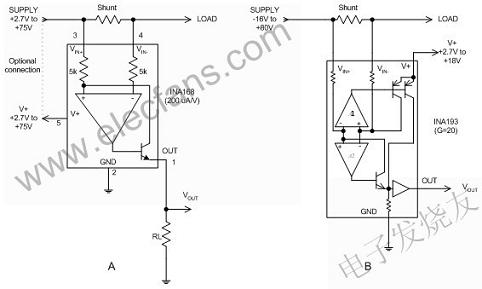 [page]圖3兩大類電流分路監(jiān)控器包括:A)電流輸出型分路監(jiān)控器和B)電壓輸出型分路監(jiān)控器車載應(yīng)用的一般性技術(shù)要求