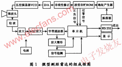 微型測距雷達(dá)的組成框圖如圖1所示。