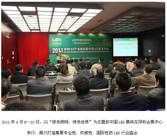 1月6日,主辦方中國電子器材總公司和深圳市LED產(chǎn)業(yè)聯(lián)合會召開新聞發(fā)布會,宣布華南地區(qū)第一個LED專業(yè)展覽會正式啟動,并將每年4月定為“深圳LED宣傳月”,讓市民了解和認(rèn)知LED產(chǎn)品。