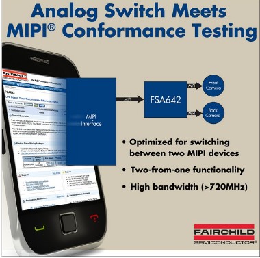 飛兆半導(dǎo)體公司(FaIRchild SemicONductor)開發(fā)了一款低功率、雙數(shù)據(jù)對(duì)2:1、高速M(fèi)IPI開關(guān)產(chǎn)品FSA642。該器件是飛兆半導(dǎo)體MIPI兼容開關(guān)系列的新產(chǎn)品,是目前唯一通過MIPI UNH-IOL的700Mbps數(shù)據(jù)率互用性測(cè)試的MIPI開關(guān)。