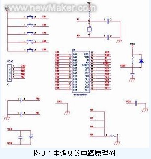 SPMC65P2404A是凌陽公司的8位元單片機,最高工作頻率為8MHz,工作電壓2.5V~5V,有192字節(jié)的RAM和4K字節(jié)的OTP ROM,有23個可編程IO口,8通道10位A/D轉(zhuǎn)換器,2通道8位定時/計數(shù)器,2通道16位定時/計數(shù)器,1個12位PWM輸出口,有低電壓、上電、看門狗、外部信號、錯誤地址復(fù)位,并且有一個蜂叫器輸出口……。利用這些資源,能夠?qū)崿F(xiàn)電飯煲的功能。