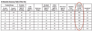 圖2NI628x數(shù)據(jù)采集板卡的絕對精度表