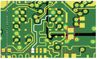 發(fā)射或者耦合是由某些幾何規(guī)則相違背造成的。例如,考慮電流回流的路徑,每一個信號都有一條信號軌跡預置好的路徑,但是在電源層和接地層經常有回路出現?;芈冯娏骺偸沁x擇電阻最小的路徑;同時在高頻條件下,選擇阻抗最低的路徑。這種新軟件可以確定哪條返回路徑是不連續(xù)的。例如,這個路徑有可能由于分離的平面而被中斷。如果回路在幾何位置上不能跟隨信號路徑,那么回路電流則會使用一條不同的路徑。依賴于回路電流周圍區(qū)域的大小,會出現一個天線輻射或接收干擾信號,導致EMC符合性的失敗或者可能的設計故障。這個軟件工具識別電源供電層中這樣不連續(xù)的銅對高頻來說是否由一個或者多個電容器相連結(如圖1)。那些電容器會形成一條對回路電流有著低阻抗的路徑,從而避免不希望的回路。