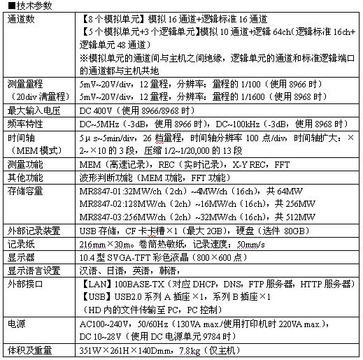 該系列分為:MR8847-01(64MW內(nèi)存);MR8847-02(256MW內(nèi)存);MR8847-03(512MW內(nèi)存)除了原本20MS/s采樣率的靈活運(yùn)用之外,更新增了波形判斷功能等一系列應(yīng)對(duì)市場(chǎng)發(fā)展需要的新功能。