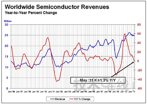 - 2011年5月全球半導(dǎo)體銷(xiāo)售額僅增長(zhǎng)1.8% 出現(xiàn)停滯和衰退
