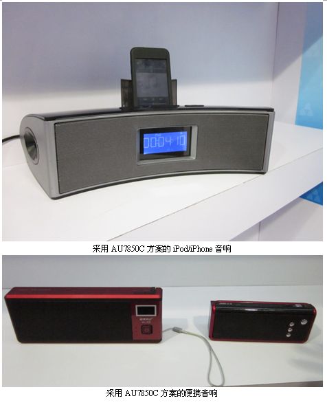 AU7850C集成了豐富的外設(shè)和接口,包括藍牙、iPod/iPhone docking接口、數(shù)字音頻廣播接口,方便用戶進行個性化設(shè)計;支持溫度、頻譜、電池電量顯示,中文歌詞同步顯示;集成16位DAC以保證高品質(zhì)音頻輸出。芯片集成度高、待機功耗低、系統(tǒng)設(shè)計簡單,BOM成本低。