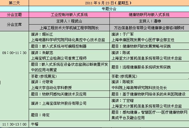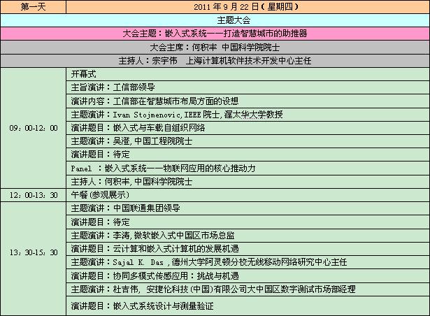 2011中國國際嵌入式大會暨展覽會日程表