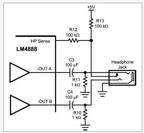 基于每個耳機檢測電路端口設計會採用不同要求,因此,該聲頻子系統(tǒng)提供兩個獨立的耳機(HP)控制輸入接腳。耳機的允許輸入可啟動SE輸出耳機模式和關(guān)閉BTL輸出模式。耳機感應檢測輸入需要用一個常規(guī)立體聲耳機插孔配合一起使用。剩余的HP邏輯輸入,能允許使用一個標準邏輯電平(Logic Level)來控制。