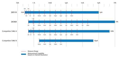 圖1 與競(jìng)爭(zhēng)對(duì)手相比,吉時(shí)利SMU有更寬的動(dòng)態(tài)范圍