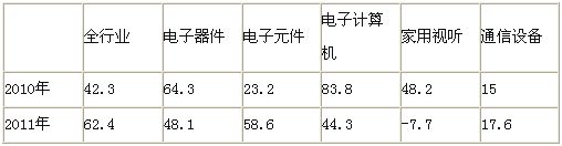 前三季度,電子元件、器件和信息機(jī)電行業(yè)分別完成投資1133、1615和1495億元,同比增長(zhǎng)58.6%、48.1%和120.2%,三個(gè)領(lǐng)域投資占全行業(yè)的65%,比重比去年提高3個(gè)百分點(diǎn),對(duì)全行業(yè)投資增長(zhǎng)的貢獻(xiàn)率分別達(dá)到17%、21%和33%。整機(jī)行業(yè)投資增長(zhǎng)放緩,其中視聽(tīng)行業(yè)完成投資89.5億元,同比下降7.7%, 比重(1.4%)下降1個(gè)百分點(diǎn);通信設(shè)備行業(yè)完成投資360億元,同比增長(zhǎng)17.6%,比重(5.5%)下降2.1個(gè)百分點(diǎn);計(jì)算機(jī)行業(yè)在平板電腦等新產(chǎn)品帶動(dòng)下,在整機(jī)行業(yè)中增長(zhǎng)相對(duì)較快,同比增長(zhǎng)44.3%,但仍低于全行業(yè)18.1個(gè)百分點(diǎn),其中9月份投資下降20.1%。