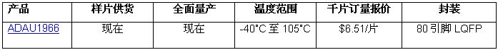 ADAU1966已經(jīng)通過AEC-100汽車應用認證,工作溫度范圍為-40° C至+105° C。它還提高SPI/I2C端口,允許外部微控制器調(diào)節(jié)音量,并以+/-3°C的精度讀取芯片溫度。
