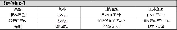 標(biāo)準(zhǔn)展位配備三面圍板(高2.5m)、公司楣板、咨詢臺1張、椅子兩把、光管2只、電源插座1個(gè)、廢紙簍1個(gè);光地不提供任何配置;展位搭建、用電、展具需另行租賃。
