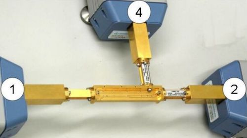 UOSM 校準(zhǔn)技術(shù)的優(yōu)點是可以利用一個未知的直通件作為標(biāo)準(zhǔn)件這一未知的直通件僅要求具有很好的正、反向互易性,因此,該未知直通件不要求具有良好的匹配和低損耗特性甚至價格低廉的、帶帶標(biāo)準(zhǔn)法蘭盤的波導(dǎo)管節(jié)、波導(dǎo)彎頭和波導(dǎo)扭轉(zhuǎn)接頭,只要具有互易特性都可以作為直通件在校準(zhǔn)后所有對輸出端口方向的改變都會造成(可避免的)精度損失,因此在這個例子當(dāng)中,一個H面的波導(dǎo)彎頭在波導(dǎo)測試端口1和4,以及測試端口2和4之間建立直通波導(dǎo)測試端口1和2是通過兩個測試端口的直接連接而建立直通的