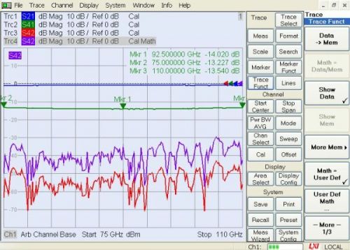 下面以一混頻器設(shè)置個90GHz帶通濾波器的測量為例,來討論測試步驟