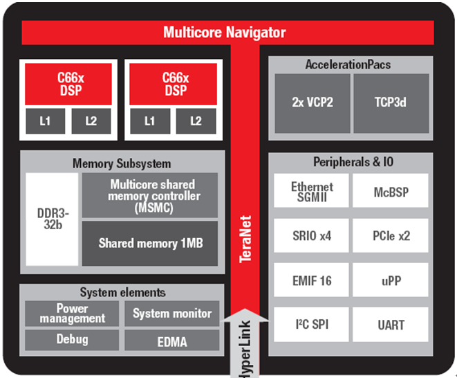 支持與其它 KeyStone 架構(gòu)器件高達 50GBaud 互連的 HyperLink 可實現(xiàn)資源擴展;