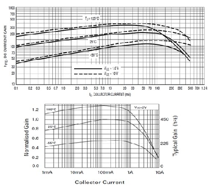 事實上,晶體管將與其組件進行配對(MMBT3904用于3906,MMBT2907用于2222)。這兩個不同的配對僅用于比較。這些器件還具有更高的電流和更高的hfe, 如FMMT618/718對,其在6A電流時具有100 的hfe(請參見圖2)。與集成驅(qū)動器不同,分立器件是更低成本的解決方案,且有更高的散熱和電流性能。