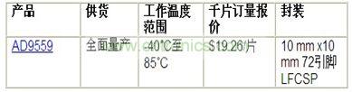 AD9559時(shí)鐘轉(zhuǎn)換器尺寸為10 mm x 10 mm,便于線路卡設(shè)計(jì)人員獲得緊湊、頻率捷變、高性?xún)r(jià)比的時(shí)鐘。適合的應(yīng)用包括數(shù)據(jù)通信、新一代有線網(wǎng)絡(luò)應(yīng)用、測(cè)試和測(cè)量、高速數(shù)據(jù)采集、視頻應(yīng)用以及無(wú)線基站控制器。