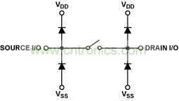 圖4.模擬開關(guān)—ESD保護(hù)二極管