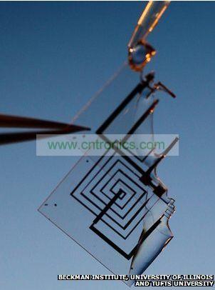 問題是傳統(tǒng)電子器件的原件尺寸意味著它很難融化。研究人員使用了一種名為納米薄膜的超薄硅板,這種材料能夠在數(shù)天或者數(shù)周內(nèi)融化。溶解的速度是由桑蠶絲控制的,桑蠶絲被溶解然后進(jìn)行了改良。通過改變桑蠶絲的結(jié)晶方式來改變它的特性,從而控制電子器件的持久時間。