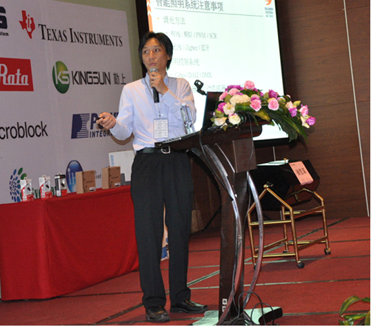 晶門科技有限公司業(yè)務(wù)營運總監(jiān)區(qū)偉江通過《步入智能環(huán)保新紀元》的主題演講,講述晶門科技的智能模塊解決方案,通過它的智能接口,采用PWM或模擬調(diào)光,可接駁不同的控制系統(tǒng)。其獨特的模塊化設(shè)計,可以結(jié)合DALI,ZigBee或藍牙等遙控系統(tǒng)成為小巧的系統(tǒng)設(shè)計。
