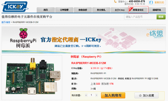 國際知名電子產(chǎn)品分銷商E絡(luò)盟(原派睿電子)已于近日正式授權(quán)ICKey平臺成為其“樹莓派”產(chǎn)品的中國區(qū)總代理,國內(nèi)個人用戶即日起可通過ICKey網(wǎng)站直接在線訂購“樹莓派”(RASPBERRY PI B型 ,512MB)產(chǎn)品,準(zhǔn)備體驗(yàn)世界上最小的卡片式臺式機(jī)!