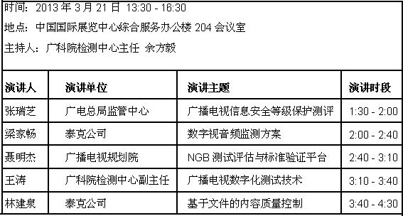 泰克CCBN 2013測試方案公開課課程安排