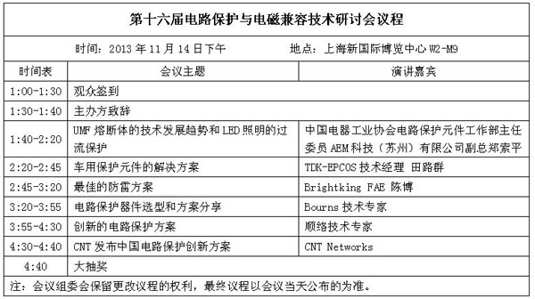 【導(dǎo)讀】2013年11月14日,第十六屆電路保護(hù)與電磁兼容技術(shù)研討會在上海開幕。來自Bourns、AEM科技 、TDK-EPCOS、君耀電子和順絡(luò)電子等全球知名專家將現(xiàn)場展示最新的產(chǎn)品,針對工業(yè)、通信、汽車等長三角地區(qū)的優(yōu)勢產(chǎn)業(yè)提供最新解決方案,與廣大長三角地區(qū)的電子產(chǎn)品設(shè)計(jì)開發(fā)人員深入互動。