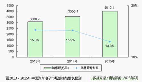 2013-2015年中國汽車電子市場規(guī)模與增長預(yù)測