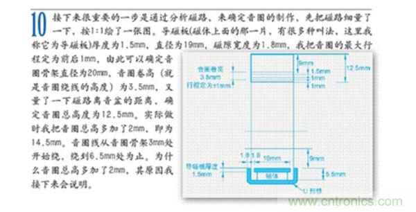 把繞好的音圈放入磁隙中,音圈正好在磁隙寬度的中間,音圈的卷高也在導(dǎo)磁板厚度的中心是由問(wèn)題的,著就等于音圈已經(jīng)打底了。這是音圈只能向上運(yùn)動(dòng),不能向下運(yùn)動(dòng),為什么做成這樣呢?我來(lái)解釋一下前面的那個(gè)問(wèn)題。就是我把音圈總高從12.5mm加到了14.5mm的原因,通過(guò)計(jì)算,若我把音圈總高做成12.5mm,從音圈骨架1mm處向上繞線(xiàn),那么當(dāng)3.5mm的音圈卷高定位在導(dǎo)磁板厚度的中心。音圈離打底還有2mm,減去1mm的向下行程,還有1mm的余地。現(xiàn)在我的做法是把音圈里打底還有2mm的高度在音圈上用線(xiàn)事先標(biāo)好,這么做事為了能把音圈卷高準(zhǔn)確定位在導(dǎo)磁板的正中心。