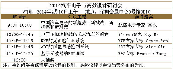 1.汽車電子和高效設(shè)計(jì)研討會(4月10日上午,深圳會展中心9號館9D10)