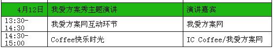 我愛方案網(wǎng)聯(lián)手中國電子分銷商聯(lián)盟,中國電子展和電子元件技術(shù)網(wǎng), 以激發(fā)設(shè)計(jì)靈感,力推中國原創(chuàng)為宗旨, 在2014中國電子展(中國電子信息博覽會,4月10日-12日)期間推出六大熱點(diǎn)活動,服務(wù)中國的原創(chuàng)設(shè)計(jì),助力中國電子信息產(chǎn)業(yè)的騰飛!中國電子行業(yè)最具人氣的交流創(chuàng)新平臺IC咖啡為此次活動的支持單位。歡迎現(xiàn)場偶遇知芯人。