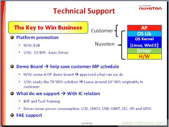 這個(gè)是我們目前的所謂的開發(fā)的門檻,其實(shí)以新唐的MCP來(lái)講,我們做的比較簡(jiǎn)單,我們的整個(gè)系列都有提供,新唐側(cè)重于在驅(qū)動(dòng)方面。另外我們公司在深圳科技園也有定期的培訓(xùn)課程。在深圳的本地,我們也有技術(shù)支持。