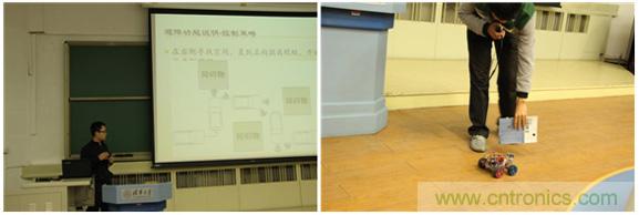 經(jīng)過激烈的角逐,進(jìn)入決賽的七支隊伍在決賽階段依次為大家展示了他們設(shè)計的作品,“Hercules汽車智能避障安全系統(tǒng)”、“主動避障智能小車”、“基于PID的牽引和制動力控制”等作品都各具特色。評委針對每一支隊伍的作品和展示進(jìn)行了點(diǎn)評,給各個作品的不足之處都提出了建議,在場所有選手都受益匪淺。最終由王翔宇同學(xué)帶領(lǐng)的團(tuán)隊所設(shè)計的“分布式驅(qū)動小車的安全性設(shè)計”憑借新穎的設(shè)計和完善的算法獲得了本次大賽的一等獎。