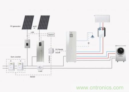 圖2:博世熱泵網(wǎng)絡(luò)和光伏系統(tǒng)能最大程度地利用太陽能