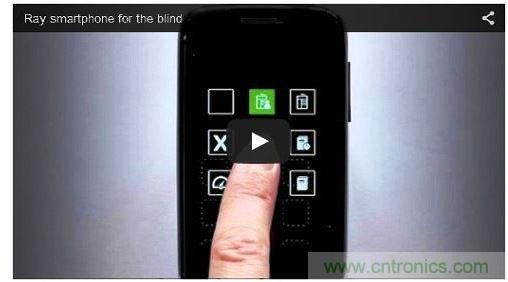 以色列新創(chuàng)公司Project Ray致力于為視障者設(shè)計實用的移動終端,打造號稱全球唯一的“整合因特網(wǎng)服務(wù)多用途輔具”──包括Ray應(yīng)用程序以及Ray系列 Android 平臺特制手機(jī)。Ray系列手機(jī)在2012年就已問世,為Project Ray與高通(Qualcomm)以及以色列視障/身障者中央圖書館(Central Library for the Blind, Visually Impaired, and Handicapped)的合作成果。