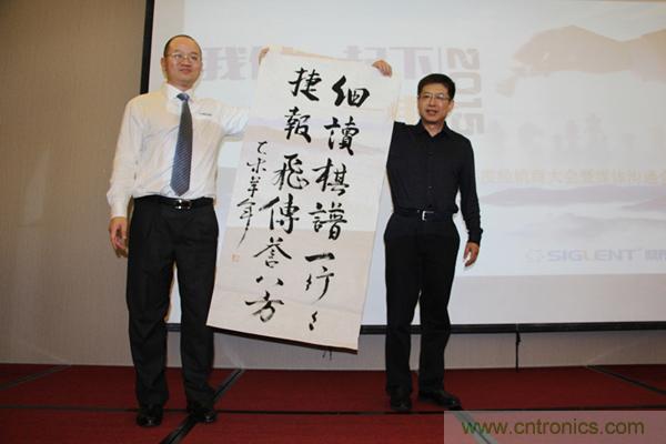 在頒獎(jiǎng)典禮的最后,來(lái)自長(zhǎng)春市百金通科貿(mào)有限公司的唐總為本次經(jīng)銷商大會(huì)題字留念,精湛的書法技藝贏得了滿堂彩,美好的祝愿溫暖人心。