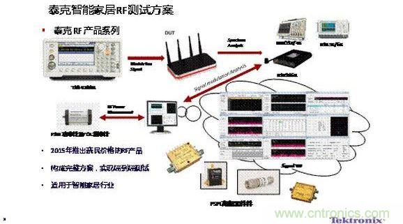 對于IOT、智能家居無線連接市場帶來的商機(jī),也被測試公司泰克所預(yù)見。泰克科技(中國)有限公司中國區(qū)渠道開發(fā)經(jīng)理王躍偉在演講中指出,目前智能家居中使用的各種無線技術(shù)存在嚴(yán)重的干擾,他們針對這一需求專門提供了相應(yīng)的測試方案。他特別推薦了他們的“混合域”測試方案和MDO測試設(shè)備。