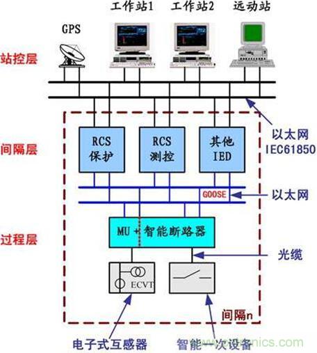 交換機(jī)和網(wǎng)線所代替,信息的交互由基于硬接線的方式,變?yōu)榱嘶诰W(wǎng)絡(luò)的方式。常規(guī)的電壓互感器和電流互感器被電子互感器所取代。