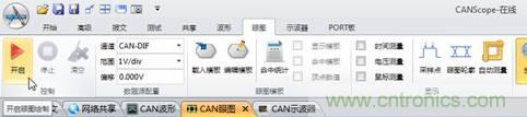 2. 打開CANScope,在DUT正常發(fā)送報文后,如圖 2點擊啟動,開啟設(shè)備的眼圖功能,獲取到如圖 3所示的眼圖波形。