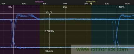 由此可見,該方法雖然可以大致測量出CAN節(jié)點的差分電平位信號特征,但由于其用于做分析的樣本很少,測量方式有很難操作,所以為了提高測量結(jié)果的準(zhǔn)確度,減低人工成本,文章中對測試方法進(jìn)行了改進(jìn),使用CANScope-Pro總線分析儀、CANScope-StressZ擴展板,使用配套軟件的樣眼圖與對稱性測試進(jìn)行測量。