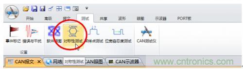 5. 為了精準(zhǔn)測試CANH+CANL的電壓值,需要使用對稱性測試功能,如圖6所示,在“測試”中點擊啟動“對稱性測試”。