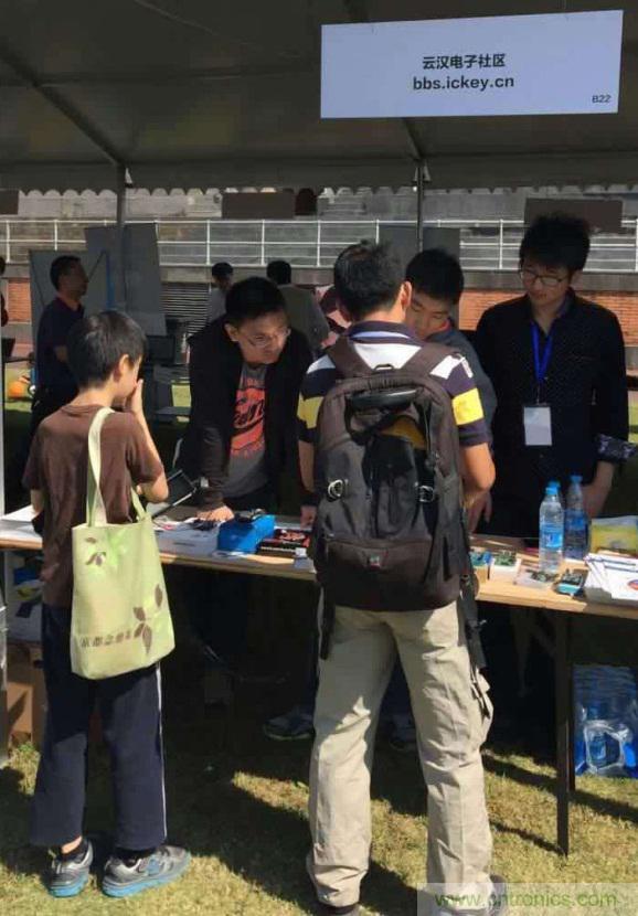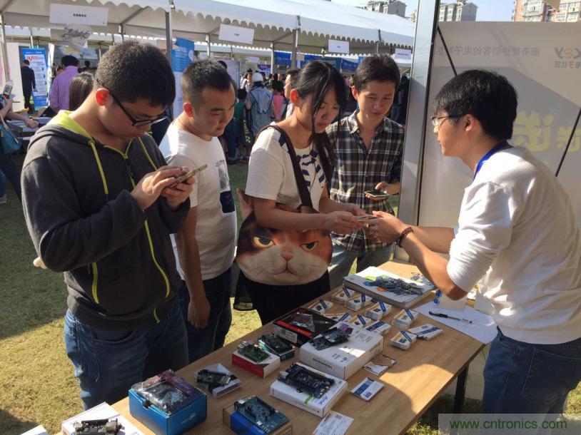 云漢電子社區(qū)工作人員向參觀者展示開(kāi)發(fā)板