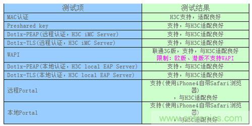 從測(cè)試結(jié)果可以看出:對(duì)于原有使用Portal認(rèn)證的WLAN網(wǎng)絡(luò),iPhone 4/iPad使用其自帶的Safari瀏覽器可以很好的支持,與H3C AC/AP適配性良好。