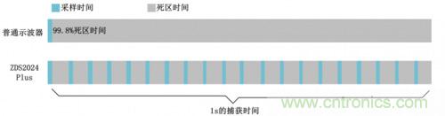 死區(qū)時(shí)間與波形刷新率息息有關(guān),要減少死區(qū)時(shí)間,必須增大波形刷新率,ZDS2024 Plus示波器具有330Kwfm/s的波形刷新率,讓異常信號一覽無余,ZDS4054 Plus示波器具有1Mwfm/s的波形刷新率,可以更快更可靠的查找故障,縮短故障排查所需要的時(shí)間。