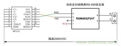 圖 5 簡易隔離RS232轉(zhuǎn)RS485方案二